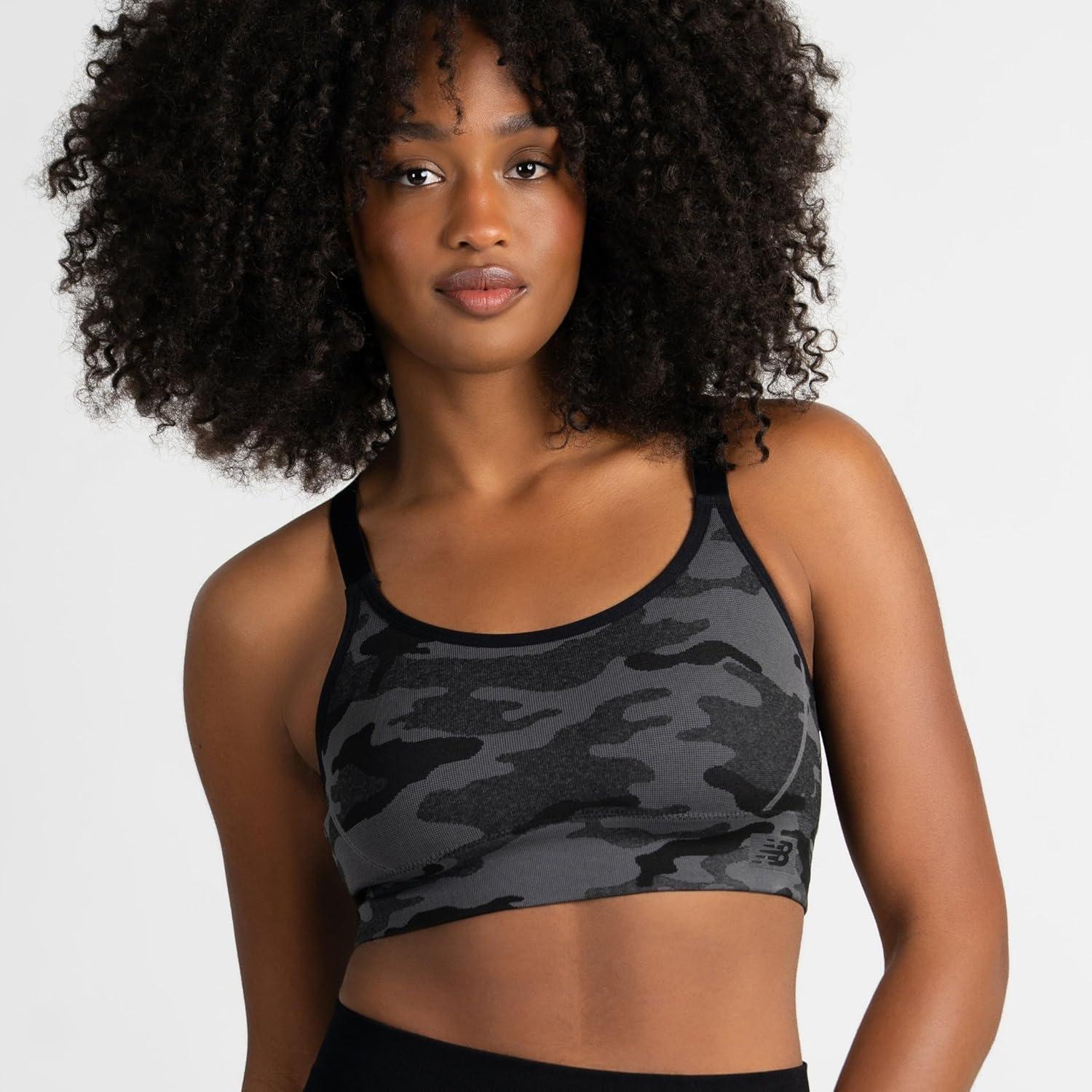 New Balance 2 Pack Sports Bras for Women, Seamless Wirefree, Padded, Adjustable Straps for Workout, Sostén Deportivo(Black Cement/Black Cement)