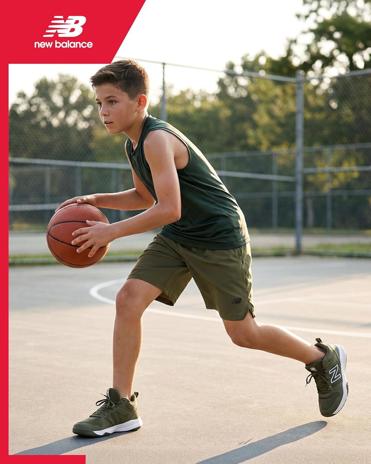 New Balance Boys Athletic Shorts – Performance Woven Boys Basketball Soccer Running Gym Shorts – Activewear for Kids(Dark Olivine)