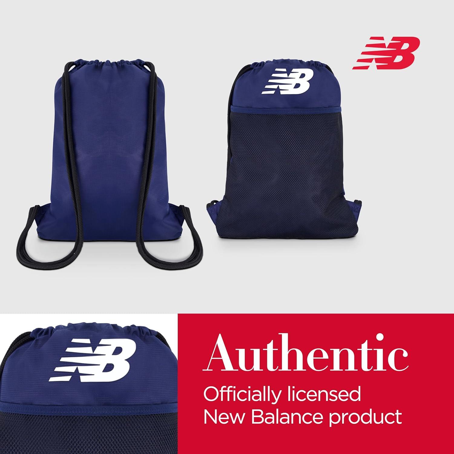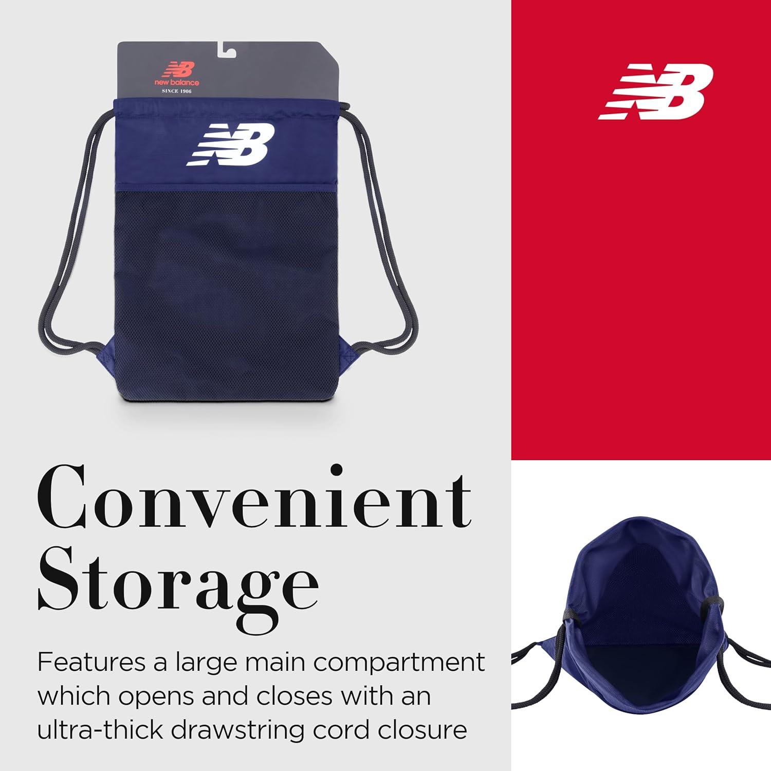 NEW BALANCE DRAWSTRING BAG: Sleek and stylish daypack with adjustable drawstring closure is adorned with the iconic New Balance flying logo and is perfect as a carrier for personal items, athletic equipment, and much more
