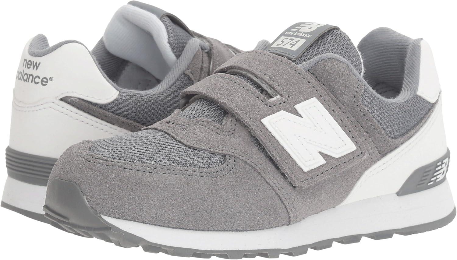 New Balance Kids’ 574 V1 Classic Hook and Loop Sneaker(Grey/White)