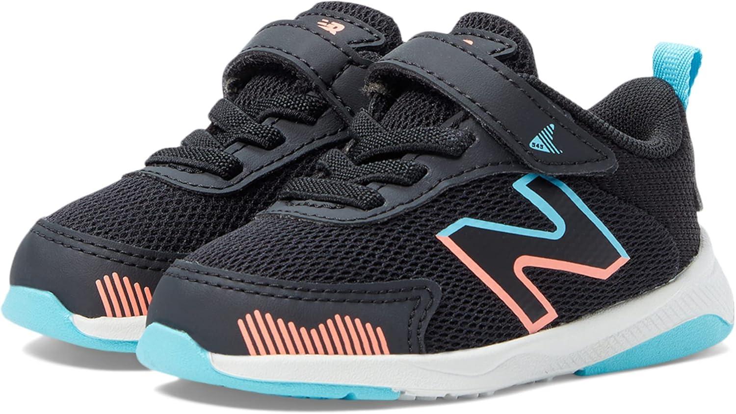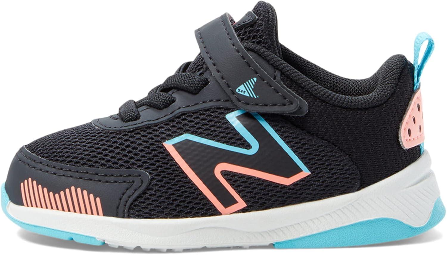 New Balance Kids’ Dynasoft 545 V1 Hook and Loop Running Shoe(Black/Grapefruit/Summer Aqua)