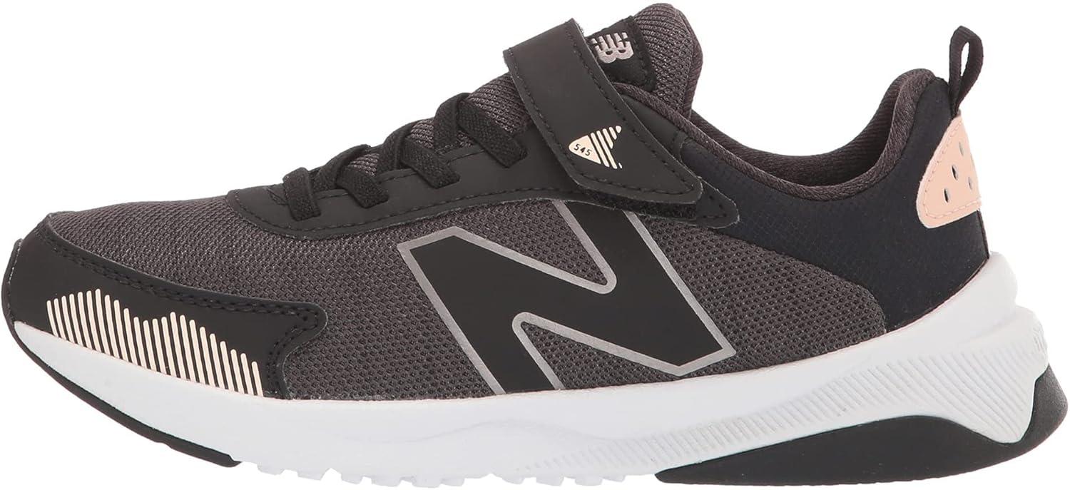 New Balance Kids’ Dynasoft 545 V1 Hook and Loop Running Shoe(Black/Oyster Pink/Champagne Metallic)