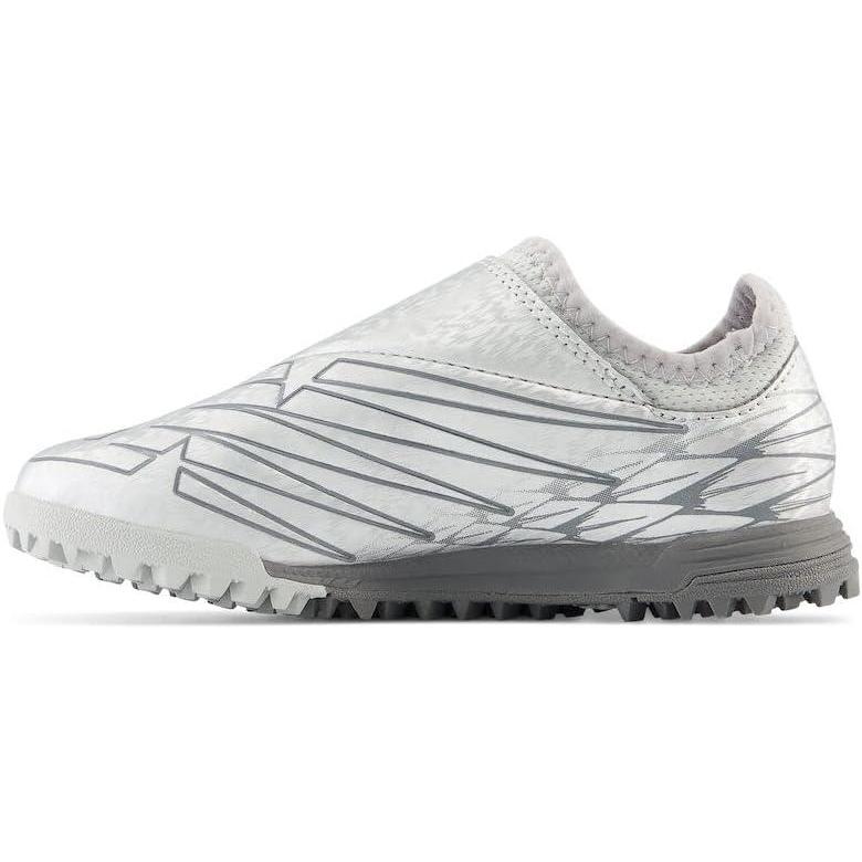 The New Balance Furon V7 Dispatch JNR TF soccer cleat for kids is designed for the player who craves a distraction-free fit. Featuring a lightweight synthetic upper with knit collar, this junior cleat delivers comfort and stability. Made for artificial turf play, the rubber lugged outsole offers traction and comfort to help optimize their performance. Simplicity at its finest.