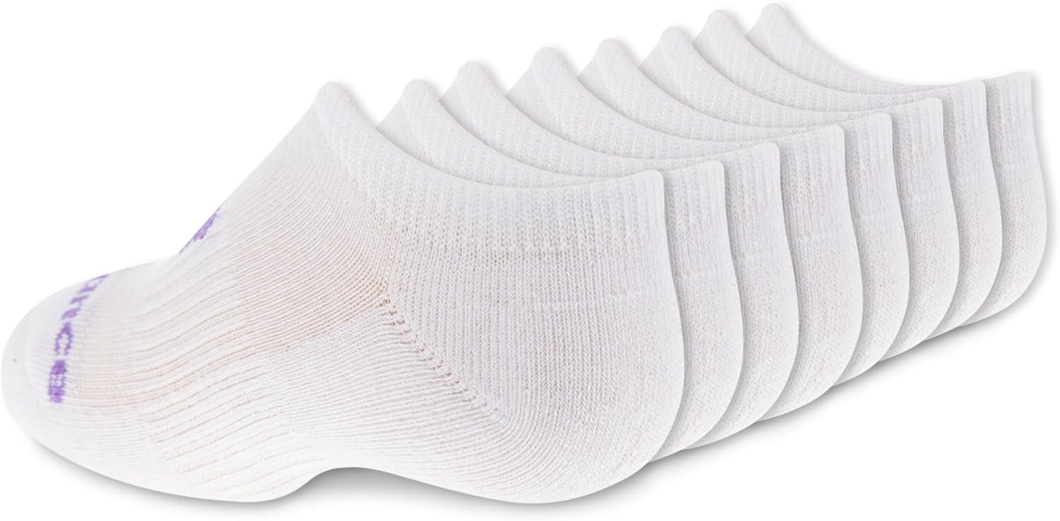 They'll run, jump, and play in comfort in these kids' no-show socks. Each pair in this high-performance 8 pack features moisture management, odor control and mesh panels for breathability to keep feet dry and fresh. Smooth toe seams prevent friction while cushioning and built-in arch support add comfort.