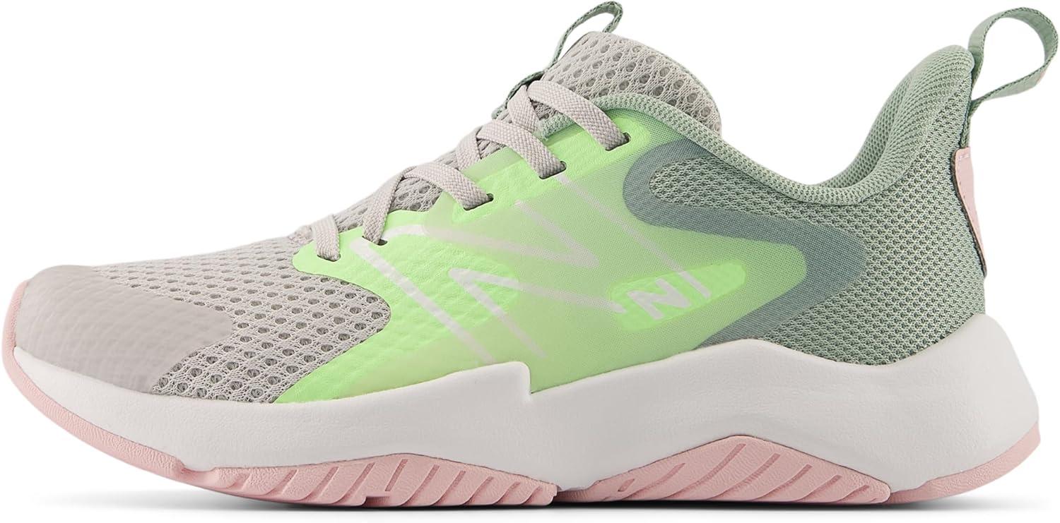 New Balance Kids’ Rave Run V2 Lace-Up Running Shoes(Grey Matter/Mint Flash/Mosaic Green)