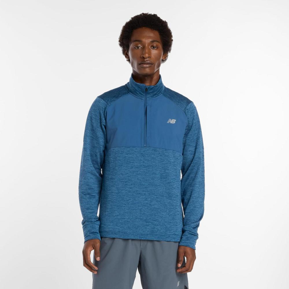 New Balance Men’s Athletics Heat Grid 1/2 Zip(Dark Shoreline Blue Heather)