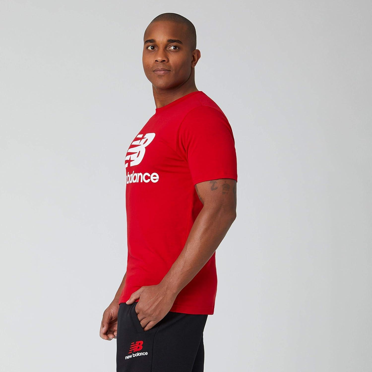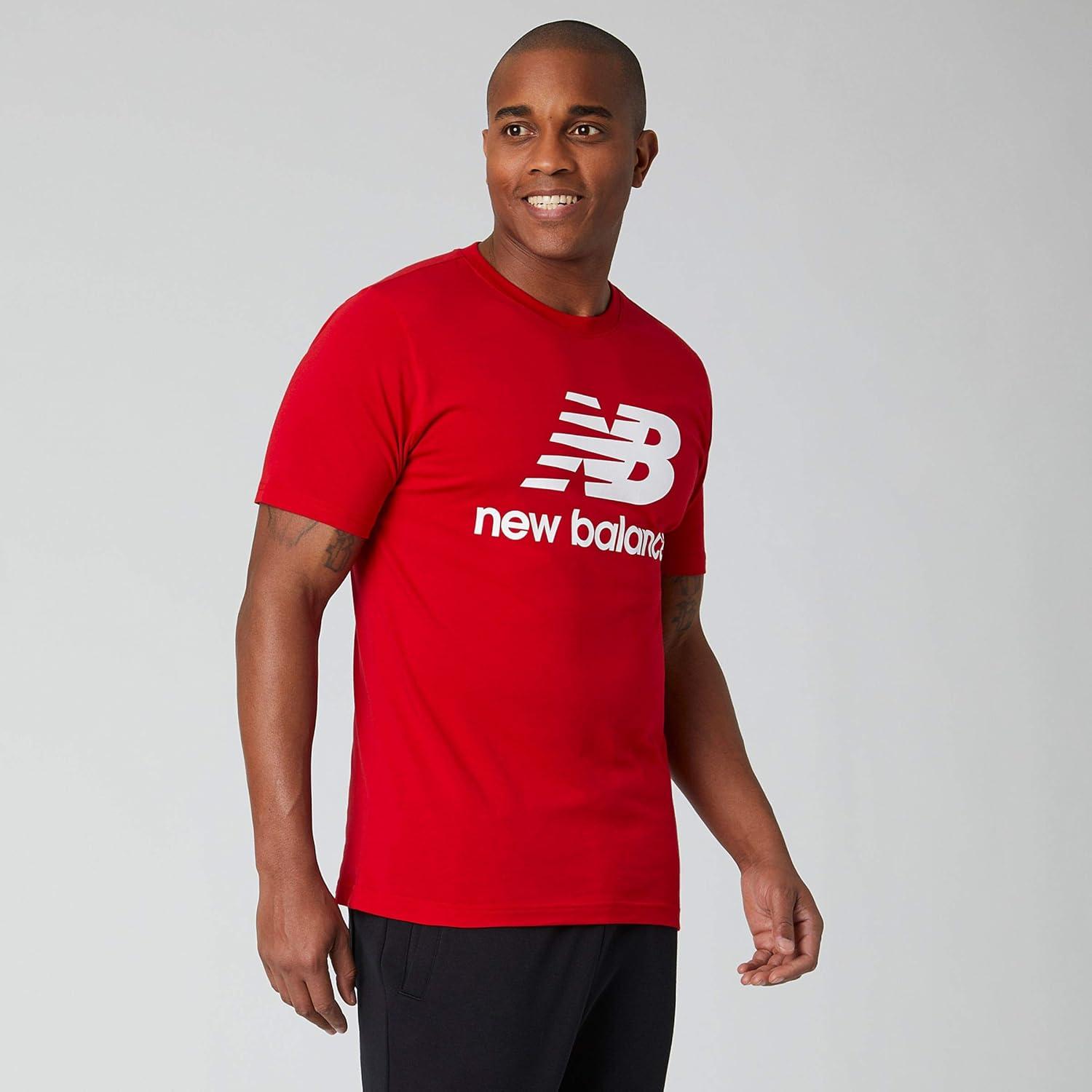 Add a versatile and easy-to-wear shirt to your wardrobe with the New Balance Essentials Stacked Logo Tee, which features comfortable and durable cotton jersey knit fabric, so it can withstand heavy use. Whether you're wearing this men's short sleeve shirt around the house, during visits with family or outings with the guys, the casual styling ensures it won't look out of place.