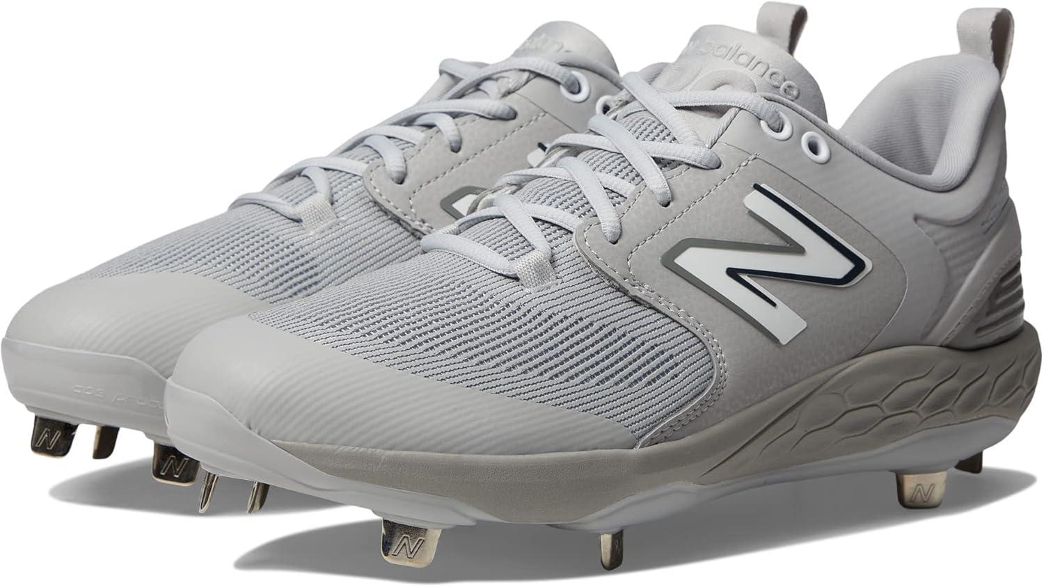New Balance Men’s Fresh Foam X 3000 V6 Metal Baseball Shoes(Grey/White)