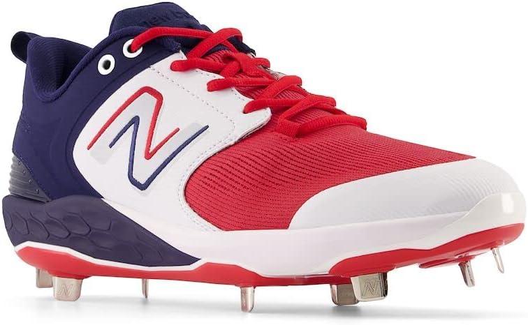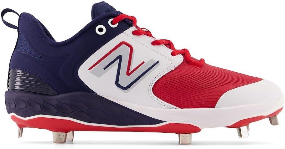 New Balance Men’s Fresh Foam X 3000 V6 Metal Baseball Shoes(White/Navy Blue/Red)