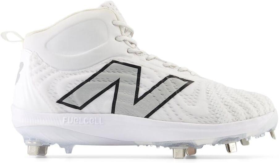 The New Balance FuelCell 4040 v7 Metal men's baseball cleats help take you around the bases and back home in no time. The FuelCell foam and molded PU insert deliver a soft underfoot cushion while maintaining their shape over the long-term. This helps propel you forward while providing a more consistent fit, game after game. With a mid-cut silhouette, these cleats offer ankle support to help you sprint and pivot with ease, and the metal spike outsole adds traction on natural grass and dirt surfaces.