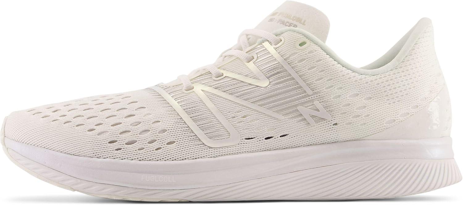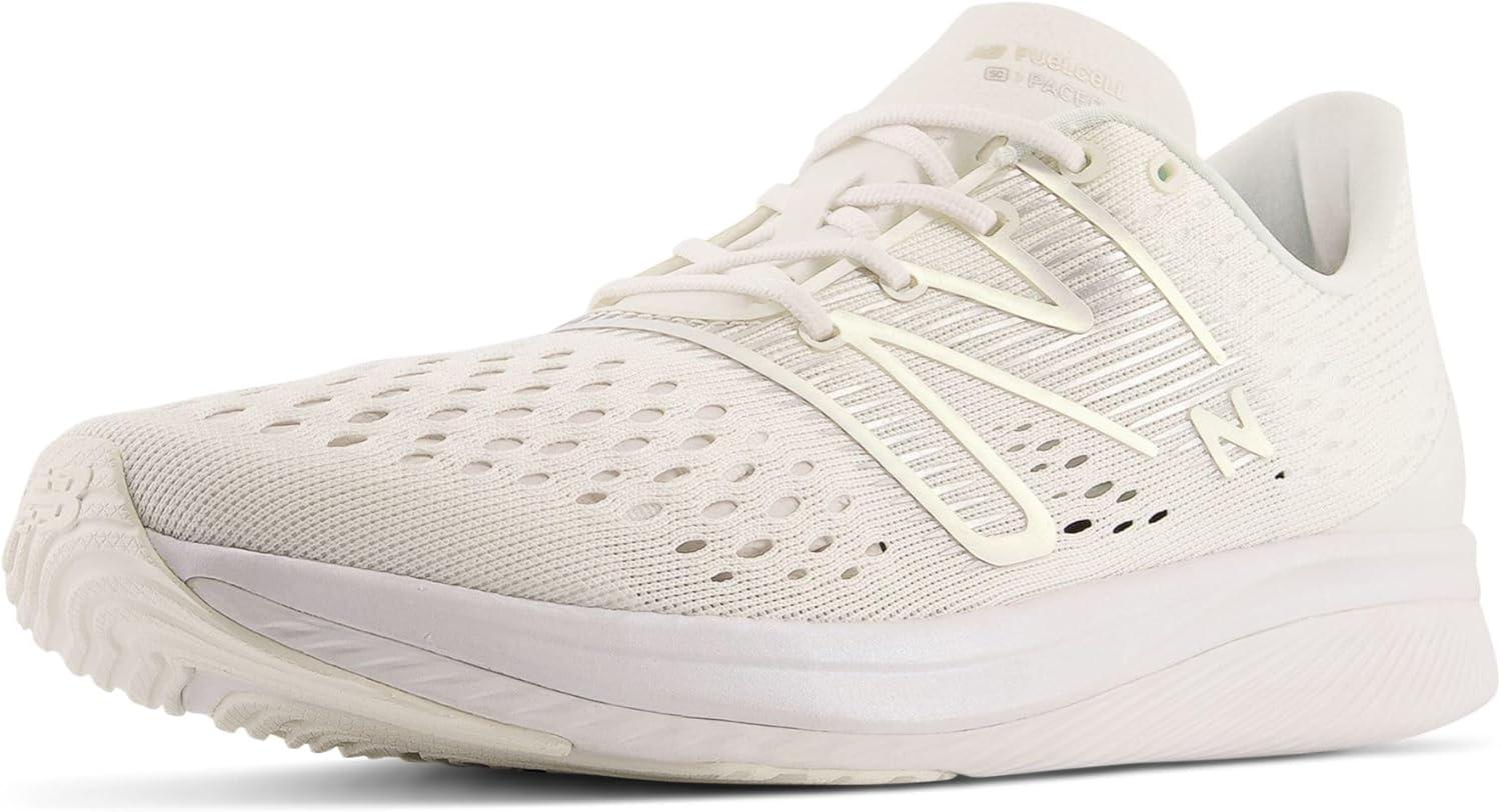 Strengthen your strides with the New Balance FuelCell SuperComp Pacer. Designed for 5k to half-marathon distances, these men's racing flats include Energy Arc and a carbon fiber plate sandwiched between springy FuelCell midsole technology to help drive you forward. The single-layer engineered mesh upper provides breathability and a lightweight feel while the sleek design and lower stack height offer a snappier, fast-on-your-feet ground feel.