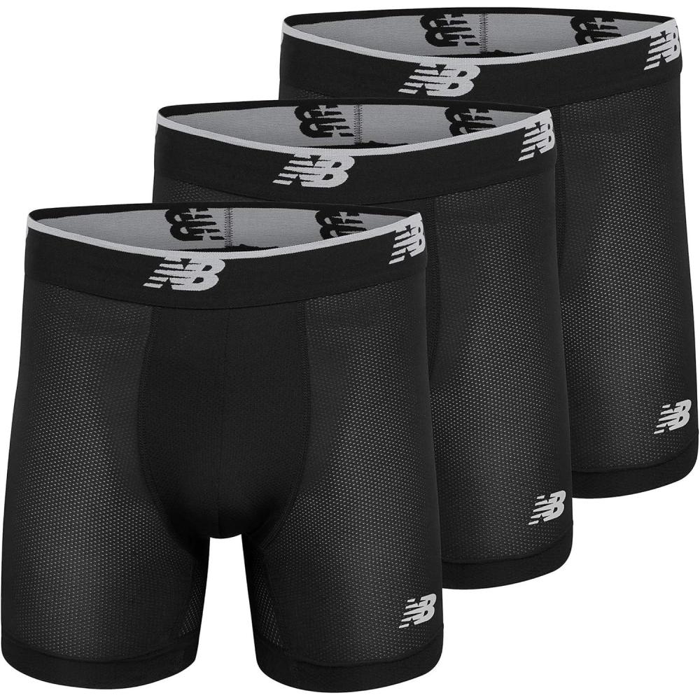 New Balance Men’s Mesh 5″ No-FLY Boxer Brief (4-Pack)(Black/Black/Black)