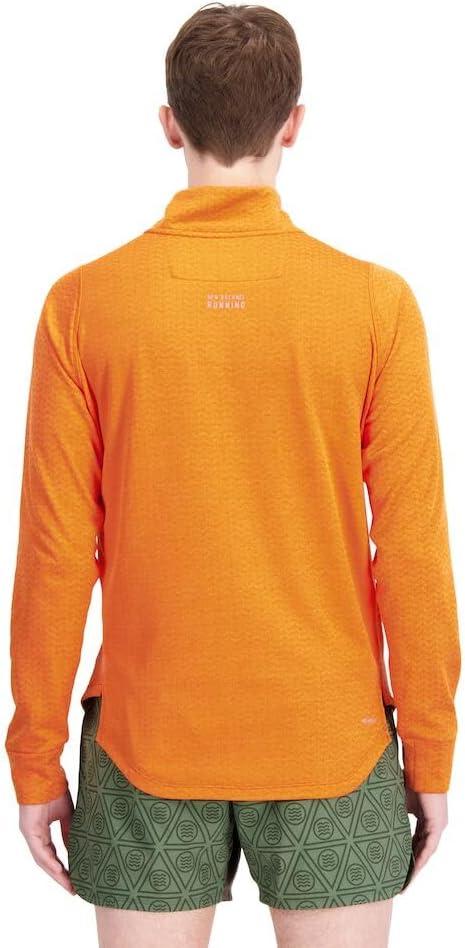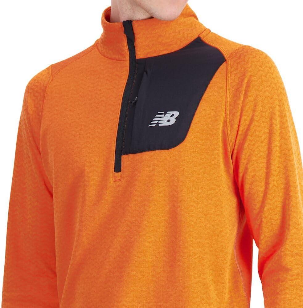 Stay warm on cold-weather runs with the New Balance NB Heat Grid Half Zip featuring moisture-wicking and warming NB HEAT technology to help you stay focused on your performance, not the conditions. This men's long sleeve shirt has a textured fleece fabric for added style, a woven chest pocket for essential storage, and thumb loops to ensure a close, comfortable fit.