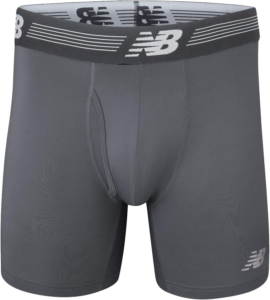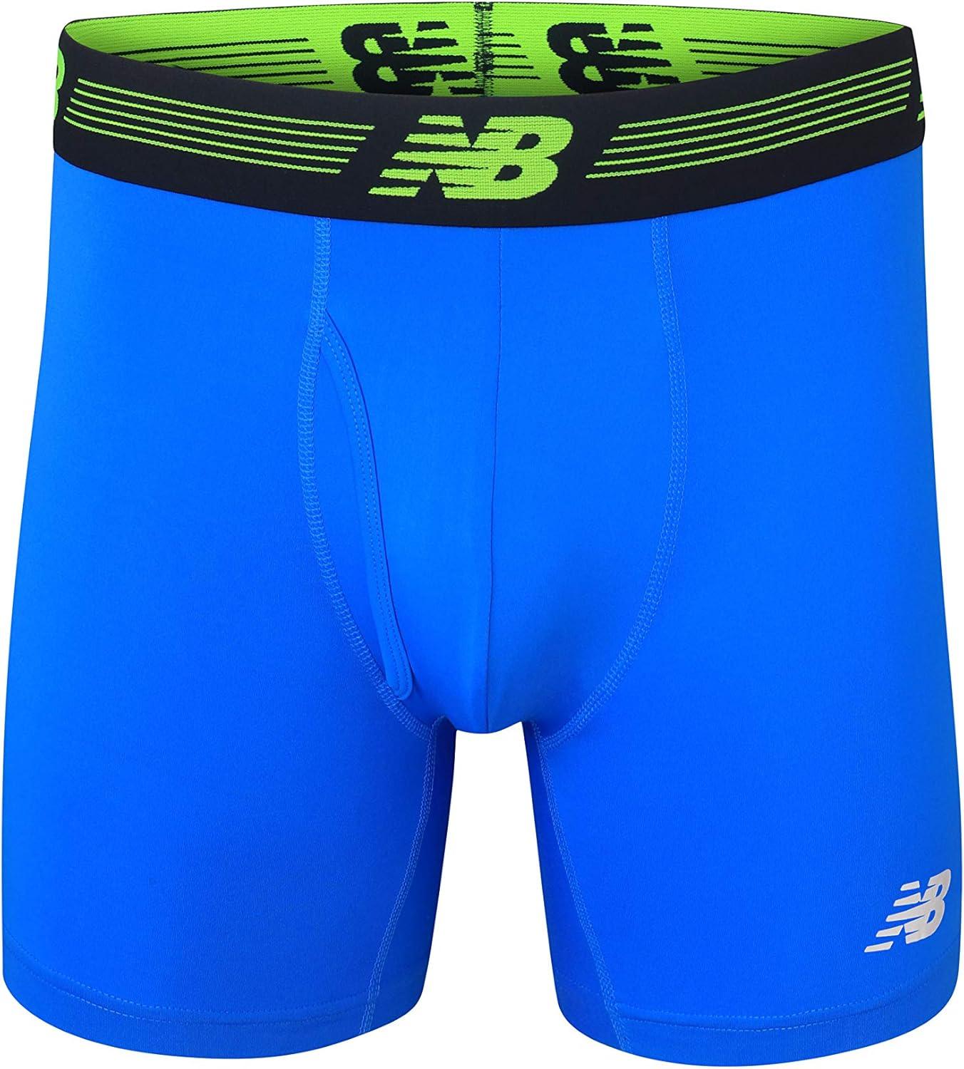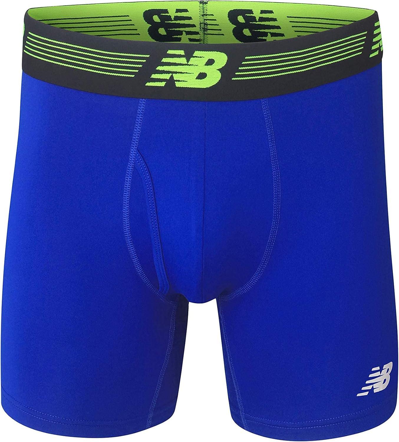 New Balance Men’s Performance Boxer Briefs with Fly, Breathable Stretch Underwear, Moisture Wicking, Soft Waistband (3 Pack)(Team Royal/Lead/Bolt)