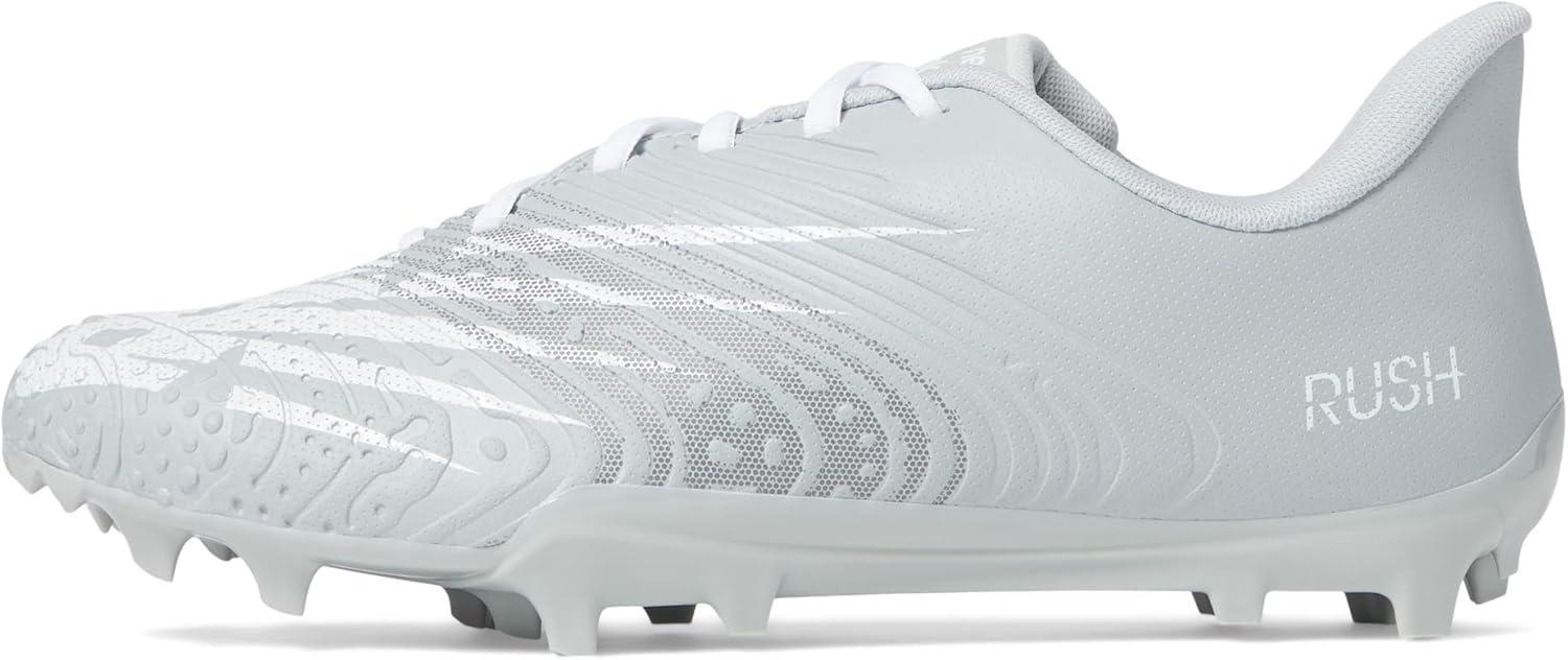 The New Balance RushV3 Low is designed to help you elevate your performance and reach your top speed. These lacrosse cleats have a TPU cleat outsole to provide superior traction on multiple surfaces no matter where you play. The lace closure and low-rise profile offer a secure fit while a durable, lightweight and comfortable synthetic upper material helps you stay focused on your game.