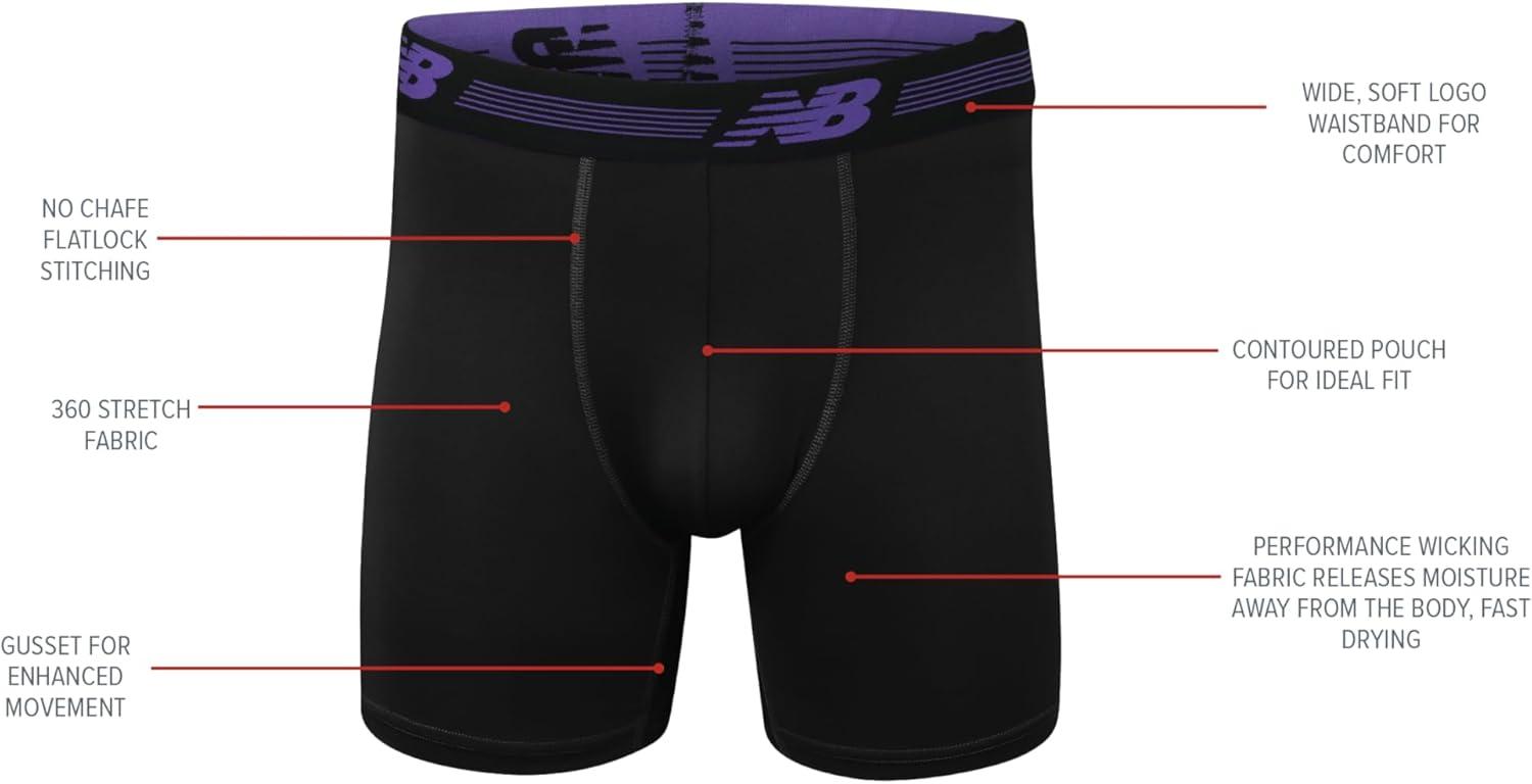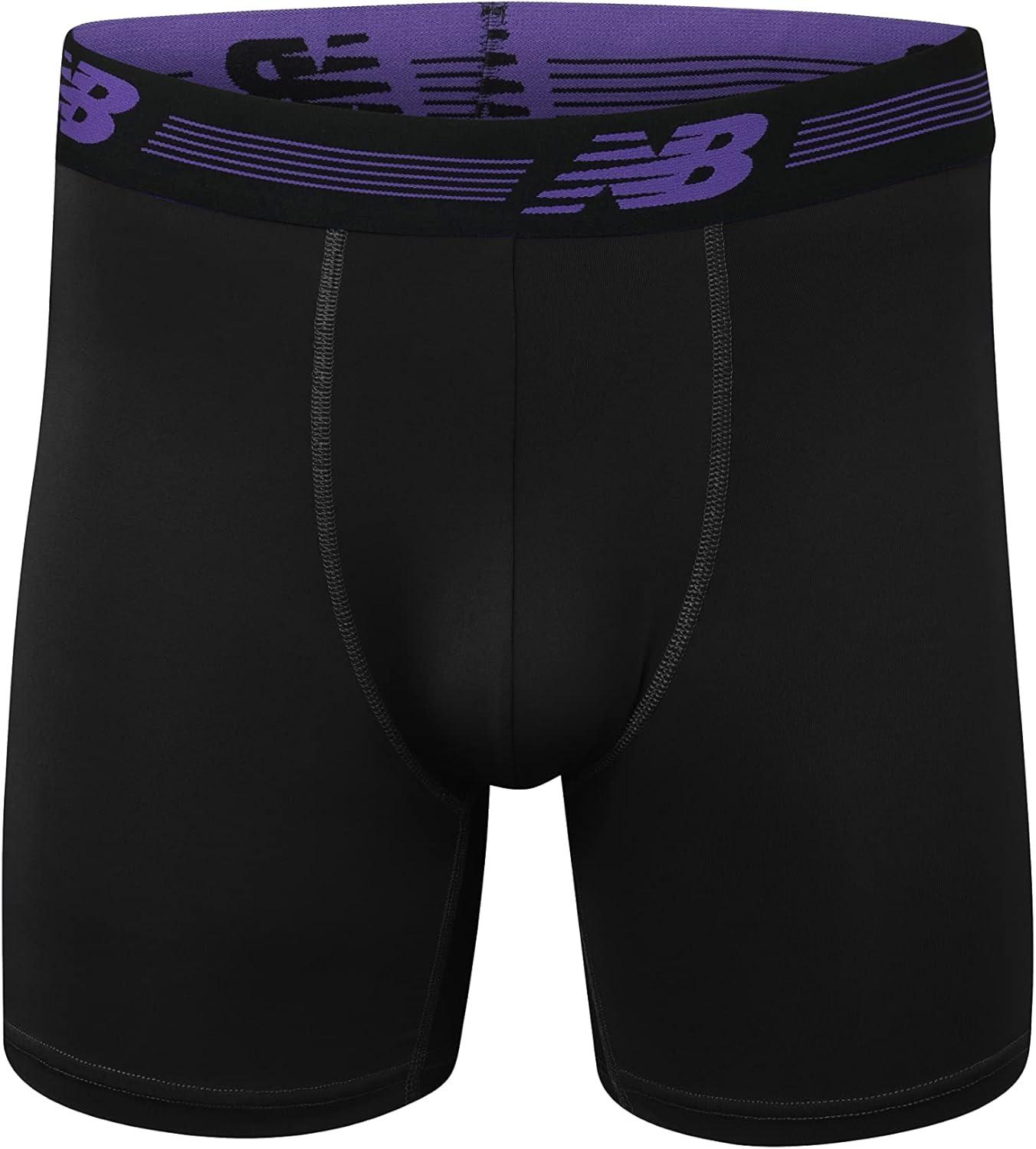 New Balance Men's Ultra Soft Performance 6" Boxer Briefs with No Fly (3 Pack)(Black/Pigment/Prism Purple Camo)