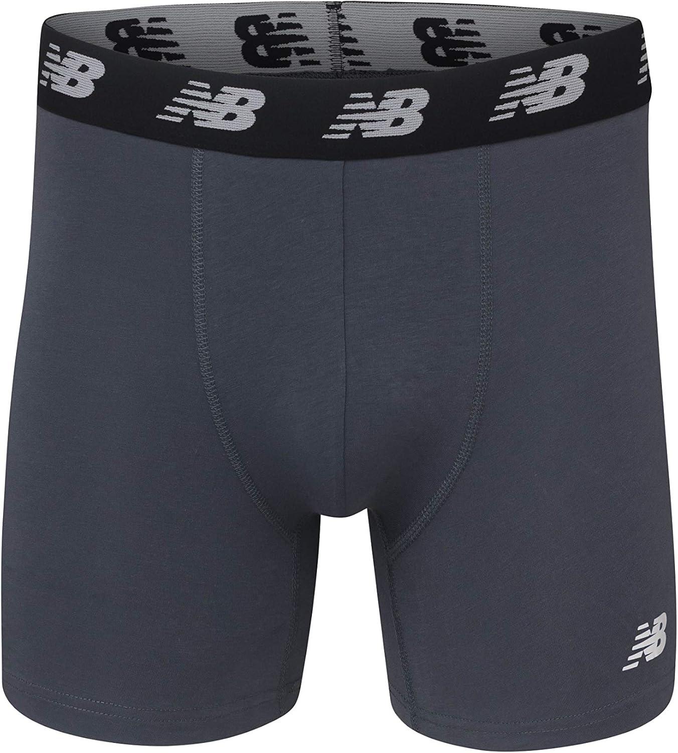 New Balance Men’s Velocity Cotton Breathable Lightweight No Fly Boxer Briefs Underwear (3 Pack)(Black/Blue/Dark Heather)