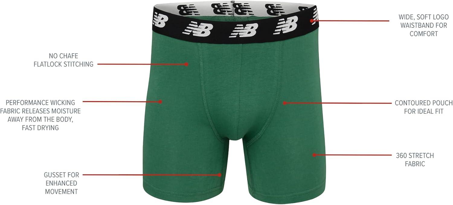 New Balance Men’s Velocity Cotton Breathable Lightweight No Fly Boxer Briefs Underwear (3 Pack)(Black/Black/Black/Black)
