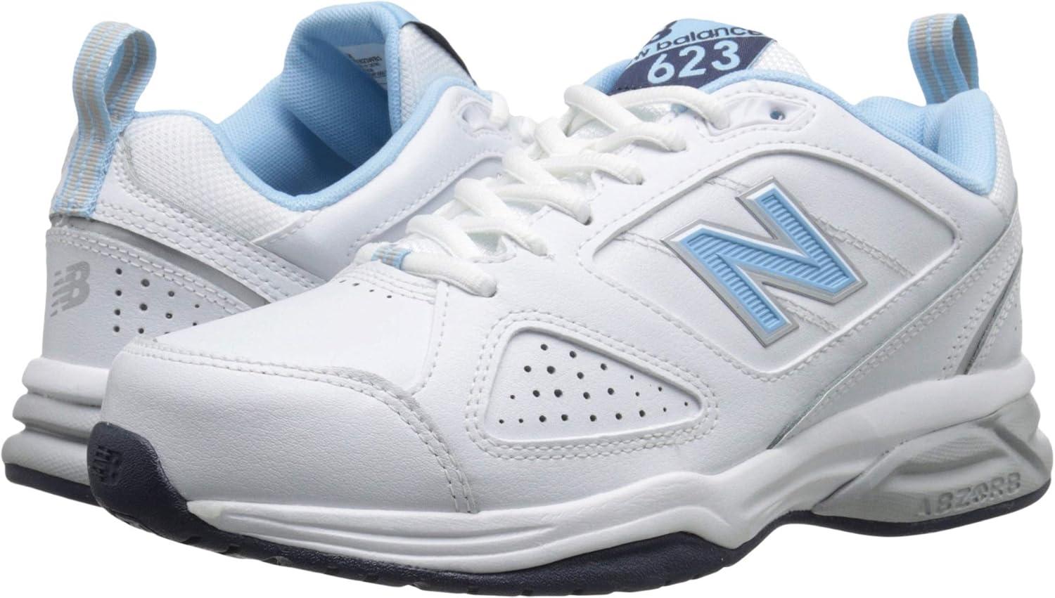 Step up to next-level comfort with the 623v3 Training Shoes from New Balance. These cushioned shoes keep active feet happy with an impressive blend of supportive technology and athletic style. ABZORB cushioning in the midsole of these comfortable training shoes keeps you moving forward by helping to prevent the discomfort and damage of daily impacts with a combination of cushioning and compression resistance. An EVA foam footbed and lightweight injection-molded EVA foam midsole provide firm yet flexible cushioning for a soft and supportive underfoot feel. Reinforced collar foam offers additional comfort that’s suitable for all-day wear. To help keep your workouts on steady ground, these trainers are constructed with an internal midsole shank designed to add midfoot structure and support with every step. Work out with confidence on indoor surfaces, thanks to the non-marking outsole on this versatile performance shoe. Or, take your show on the road knowing the water-resistant leather uppers of these trainers have you covered even when the weather isn’t cooperating. Built for style as well as substance, these New Balance training shoes stand out with an athletic-looking upper, classic New Balance branding and a secure lace-up closure.
