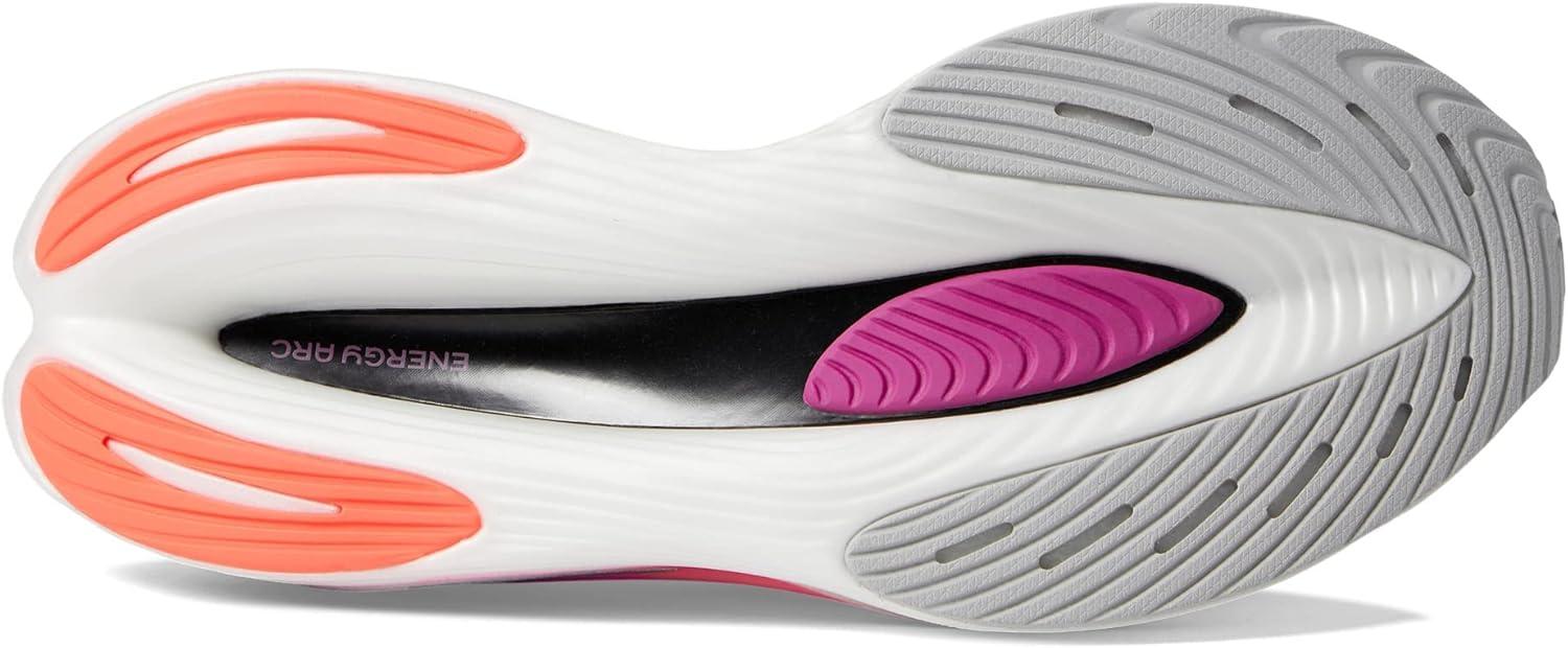 Built for marathon runners who never give up, the New Balance FuelCell SC Elite V3 women’s running shoes pack the benefits of technology and performance into a lightweight and breathable shoe. The two-layer FuelCell midsole delivers the highest energy return of New Balance performance foams currently on the market, and the bootie upper construction provides a locked-in fit. For ideal energy return, displacement and propulsion, this shoe also features innovative Energy Arc technology.