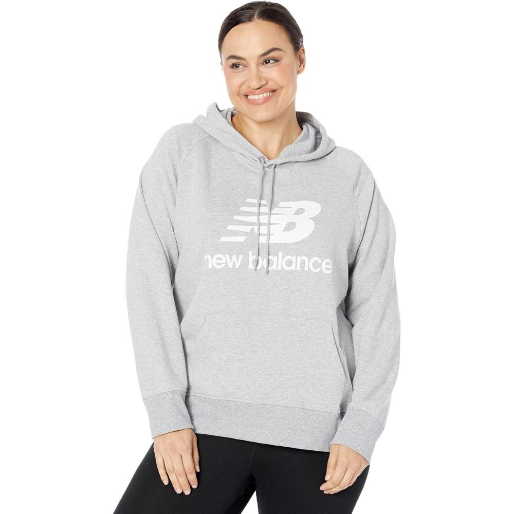 The New Balance NB Essentials Pullover Hoodie combines fashion and comfort for everyday wear. This women's hoodie features a relaxed fit designed to drape loosely from the chest, waist and hip for comfort and ease, while the French Terry fleece provides an ultra soft feeling. Topped off with a ribbed hem and cuffs, drawcord, and center-front stacked graphic, this classic hoodie provides style you'll want to show off everywhere.