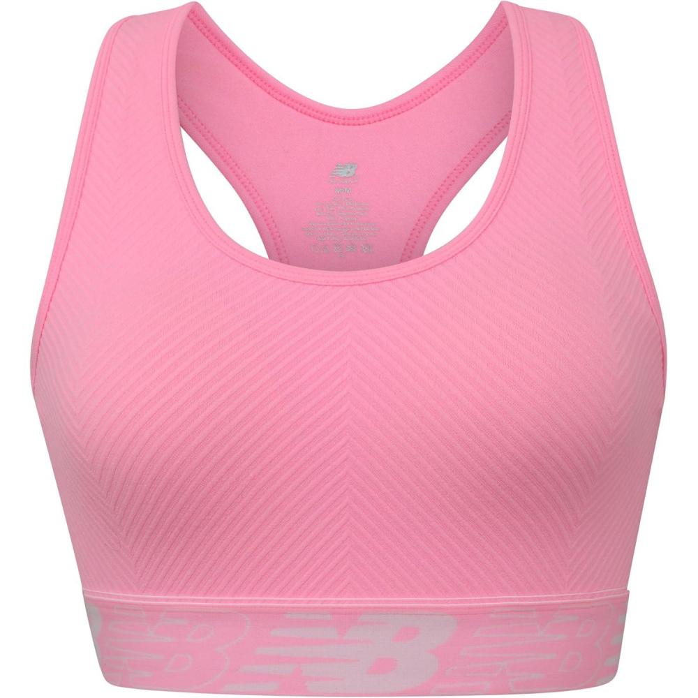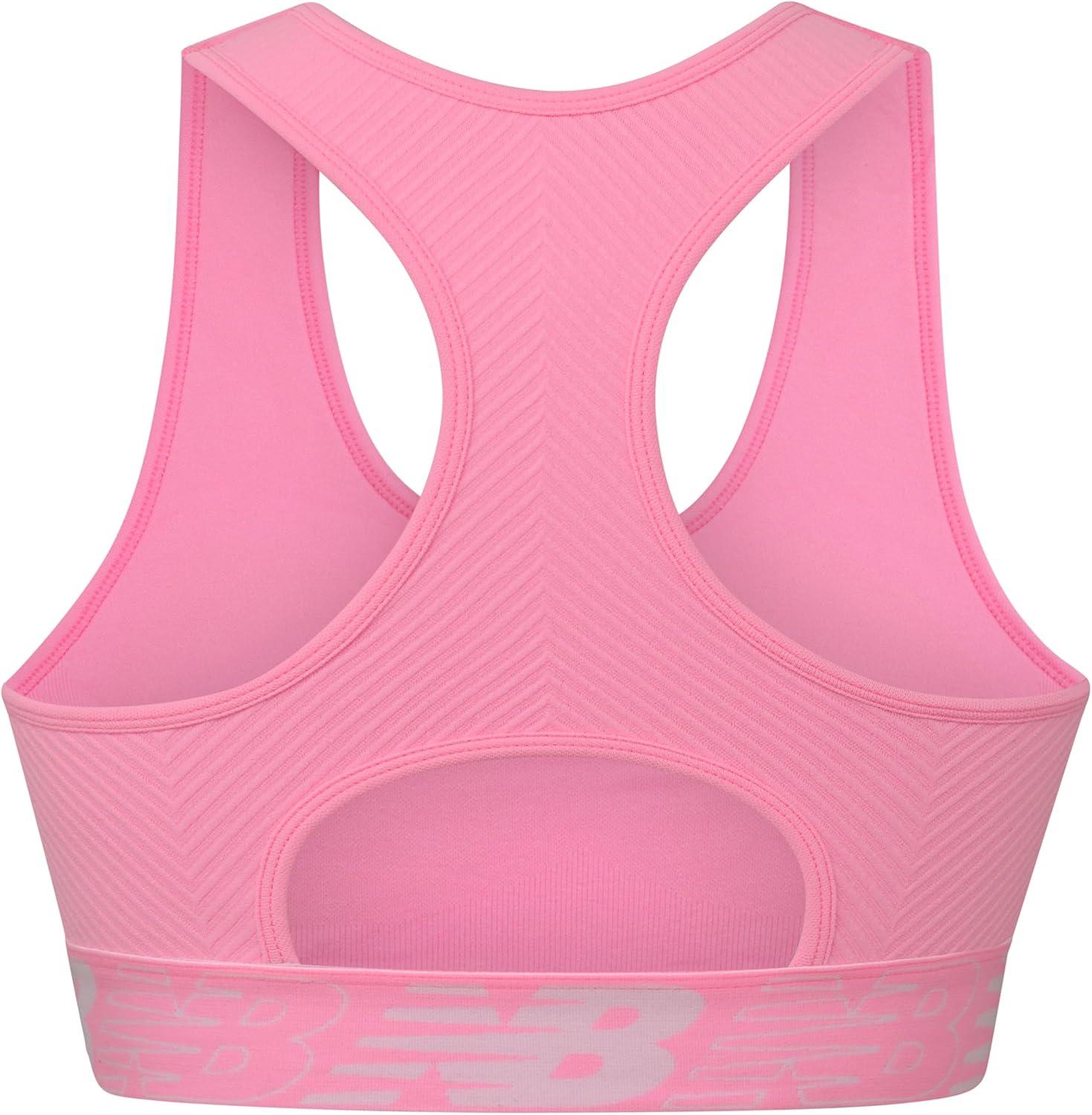 New Balance Womens Seamless Wirefree, Racerback Sports Bra with Removable Pads, Bottom Band with Logo(Peony Glow)
