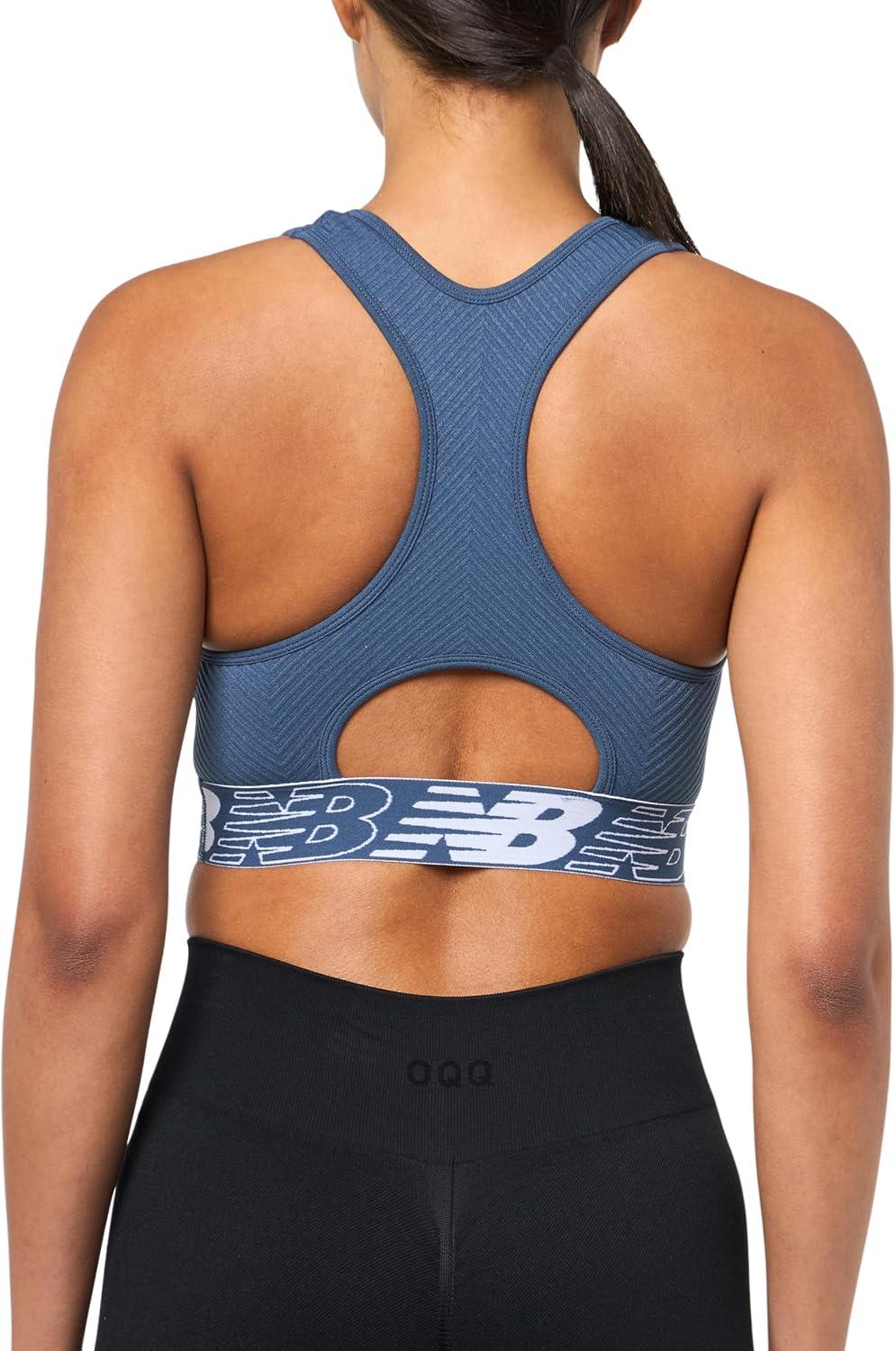New Balance Womens Seamless Wirefree, Racerback Sports Bra with Removable Pads, Bottom Band with Logo(Vintage Indigo)